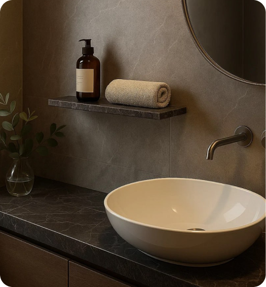 Полка из камня превзошла ожидания: выглядит стильно и солидно, поверхность гладкая и аккуратно обработанная. Конструкция очень прочная – держит даже тяжёлые предметы без малейшего прогиба. Отличное сочетание качества и эстетики, однозначно рекомендую!