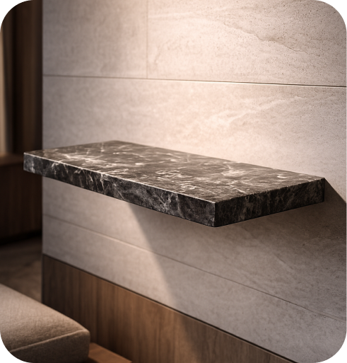 Полка из камня превзошла ожидания: выглядит стильно и солидно, поверхность гладкая и аккуратно обработанная. Конструкция очень прочная – держит даже тяжёлые предметы без малейшего прогиба. Отличное сочетание качества и эстетики, однозначно рекомендую!